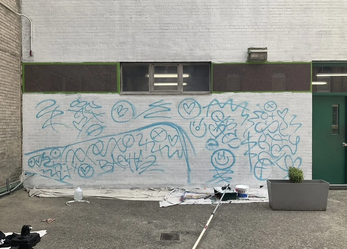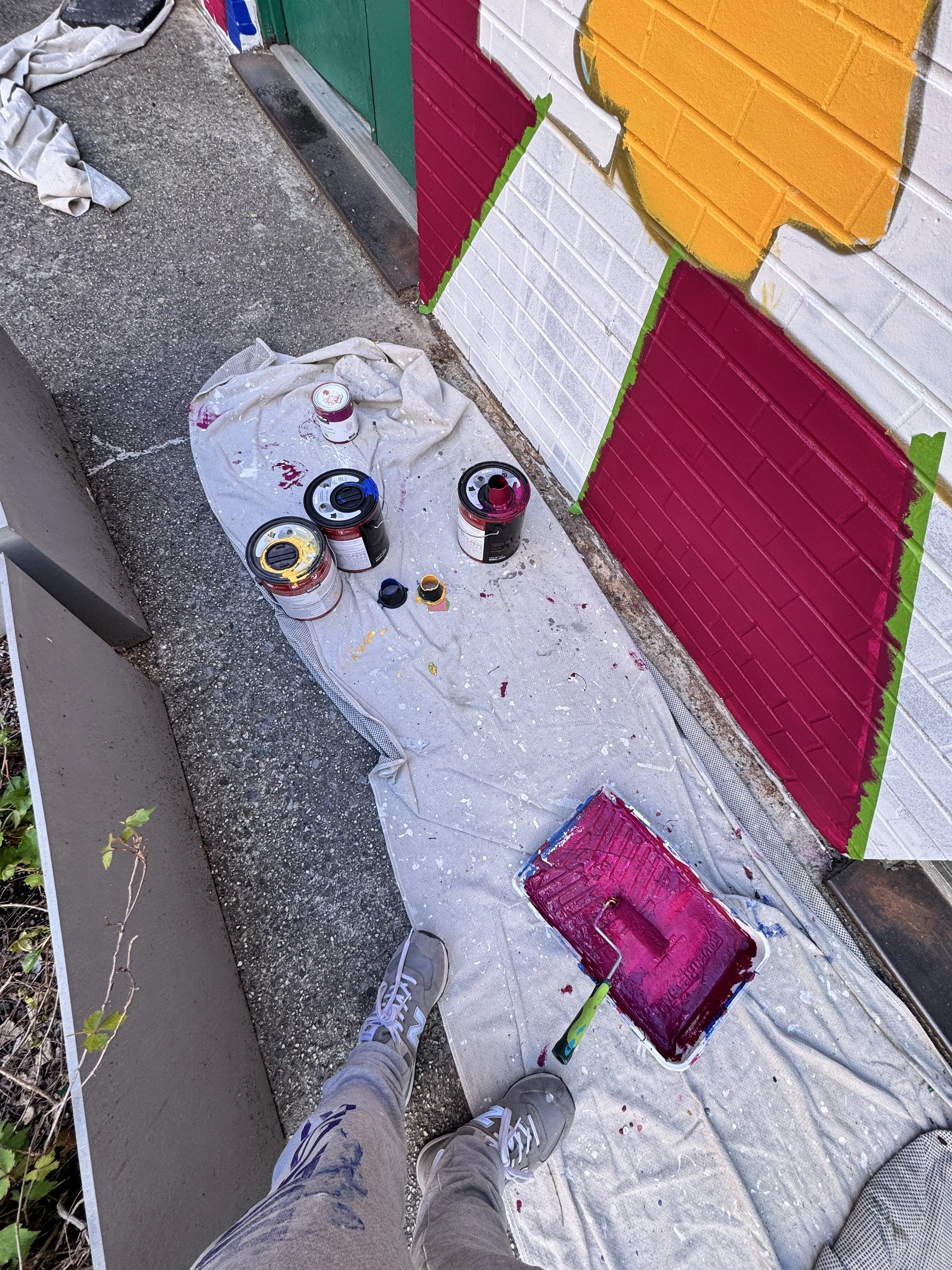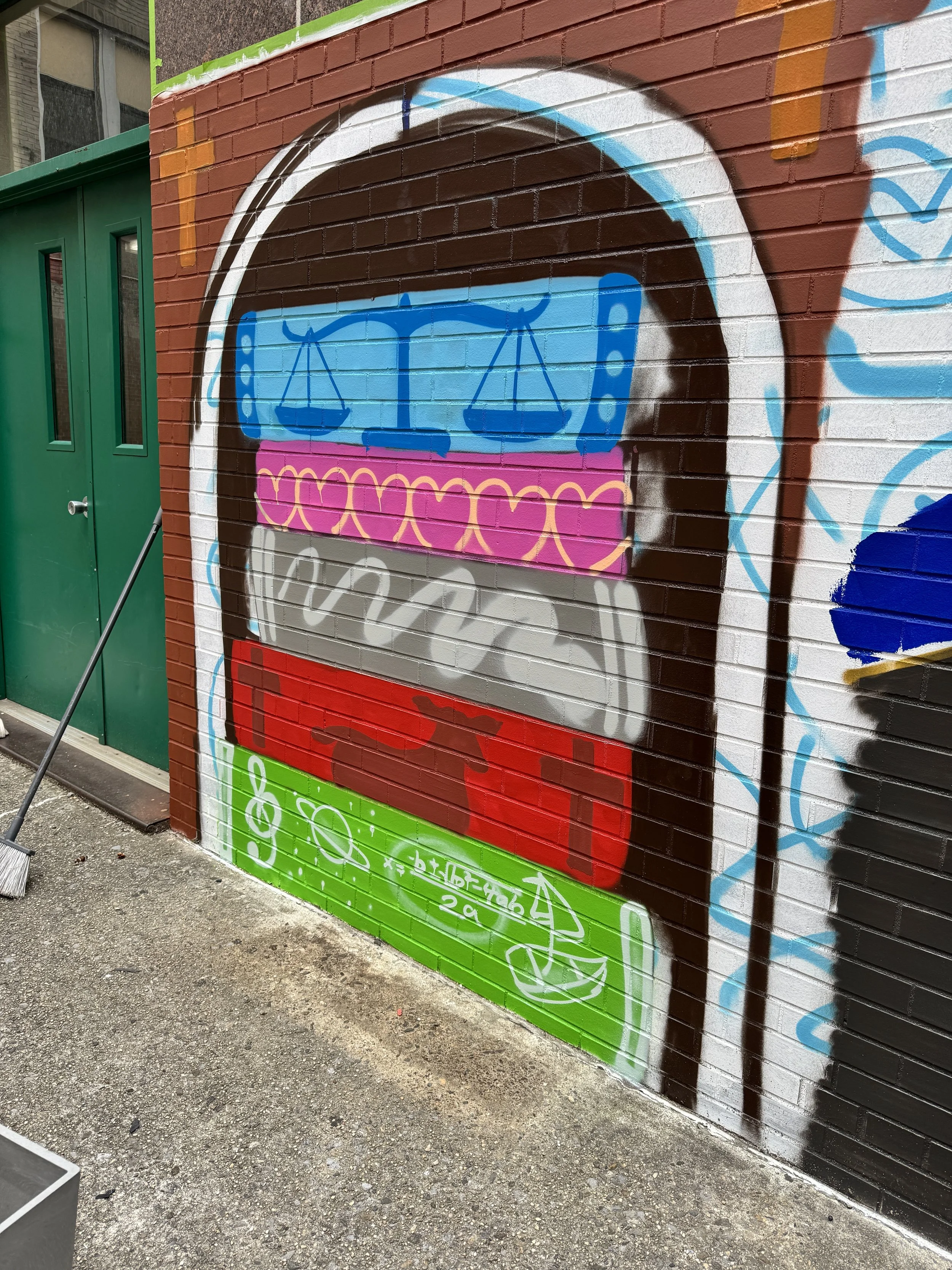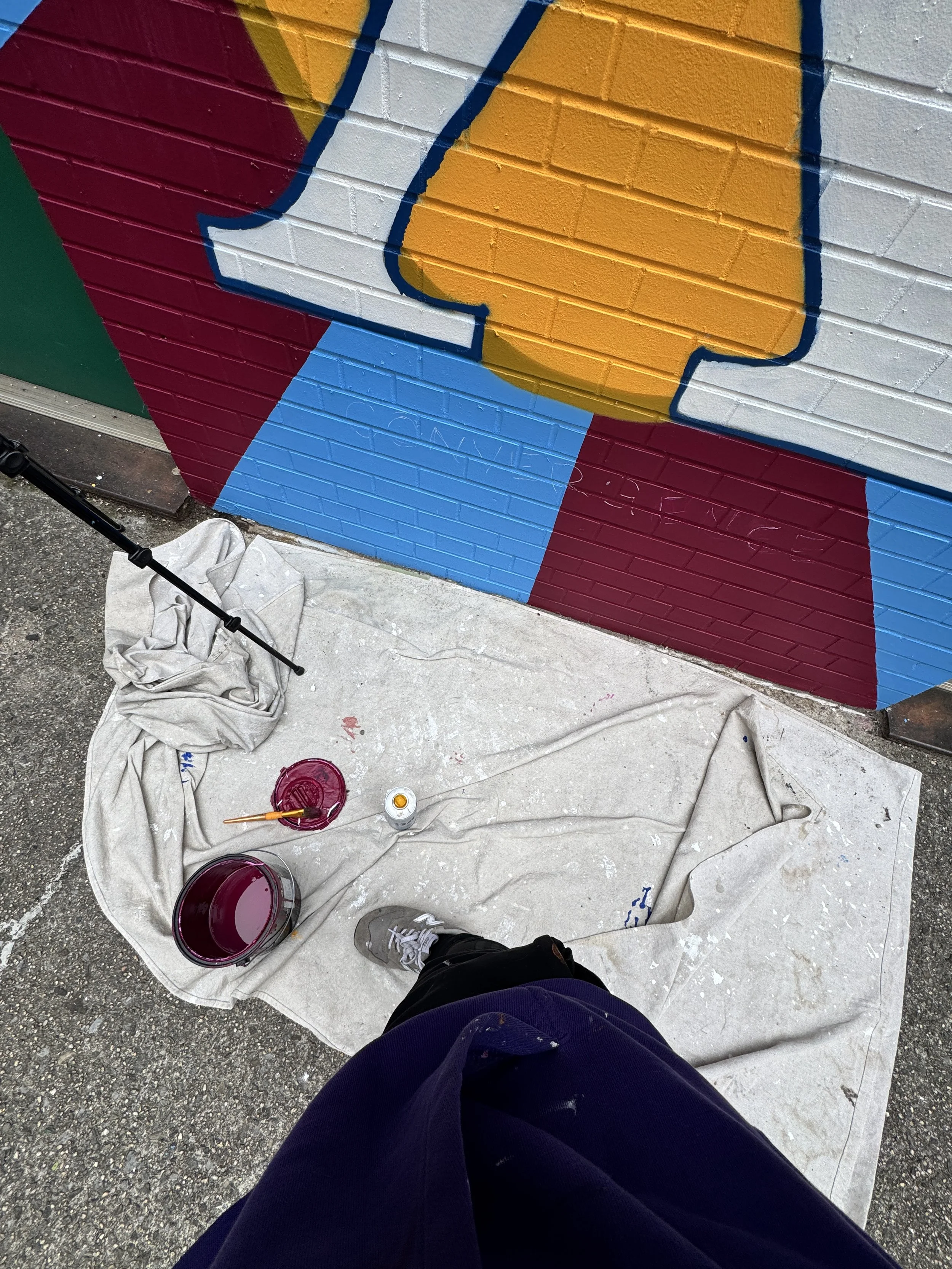 For the Class of 2025’s senior gift, I was commissioned to paint a mural in the most central part of the school: The Quad. As a former student at the school, it was an honor coming back to share my art with the school and students. I held three conversation sessions with the students to learn about them, what they care about and what they wanted to see on the wall.