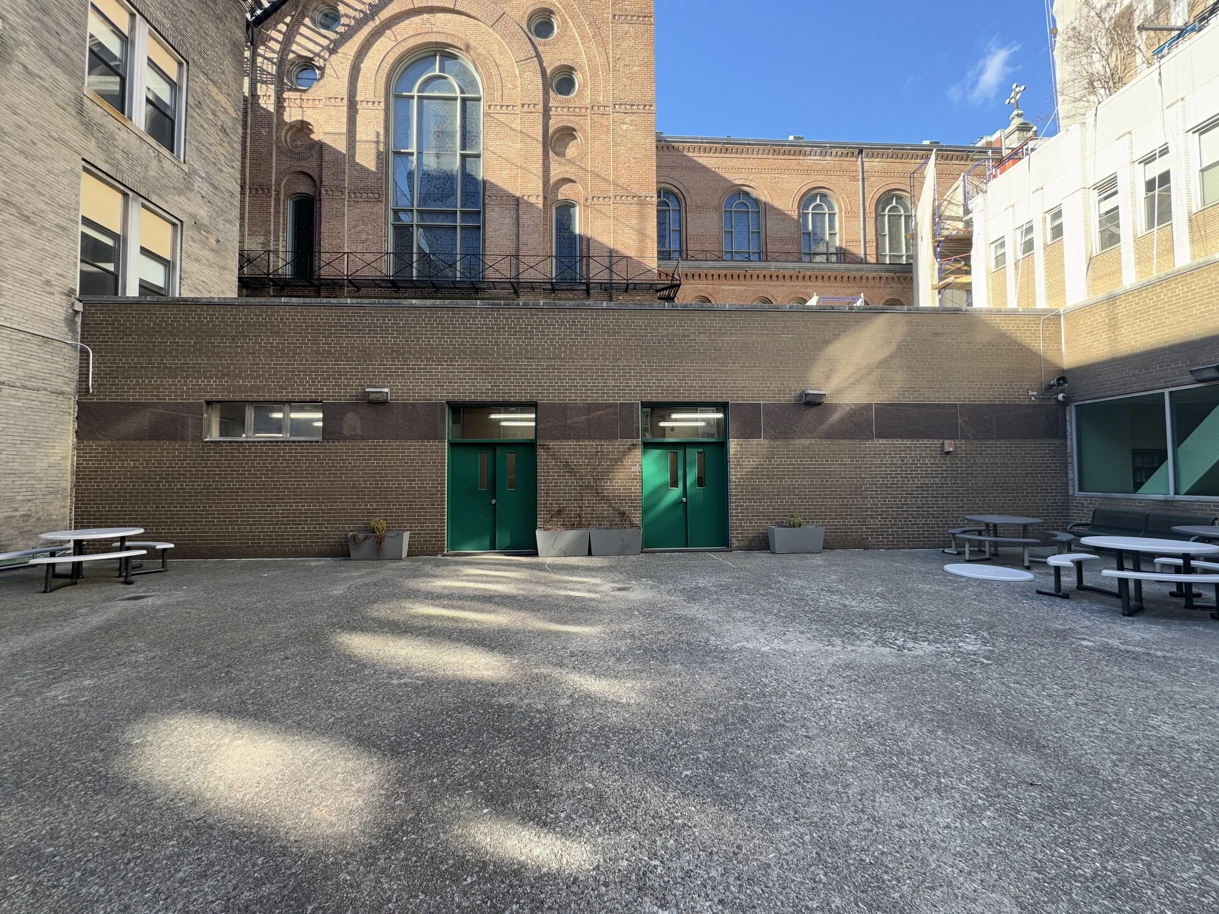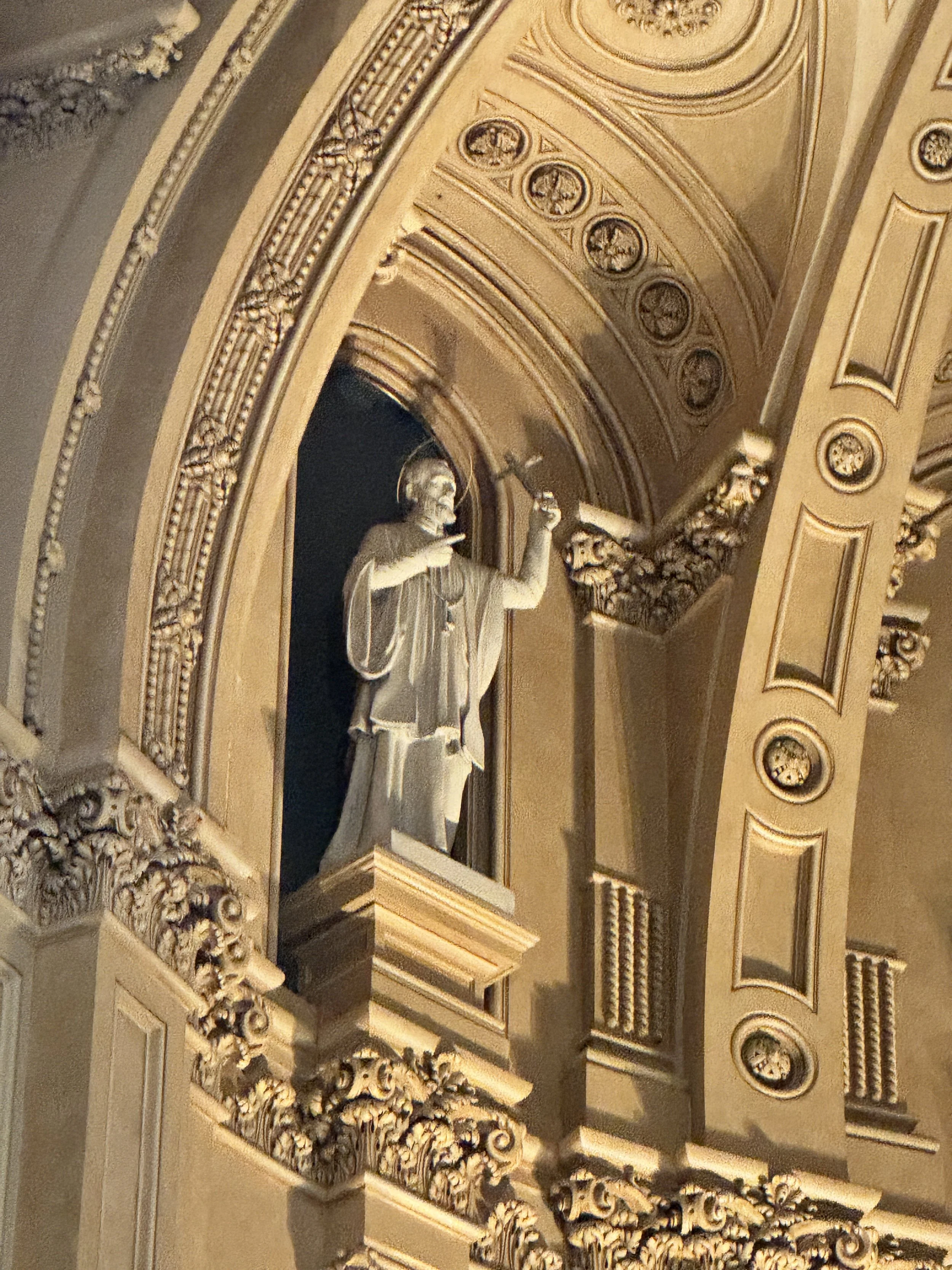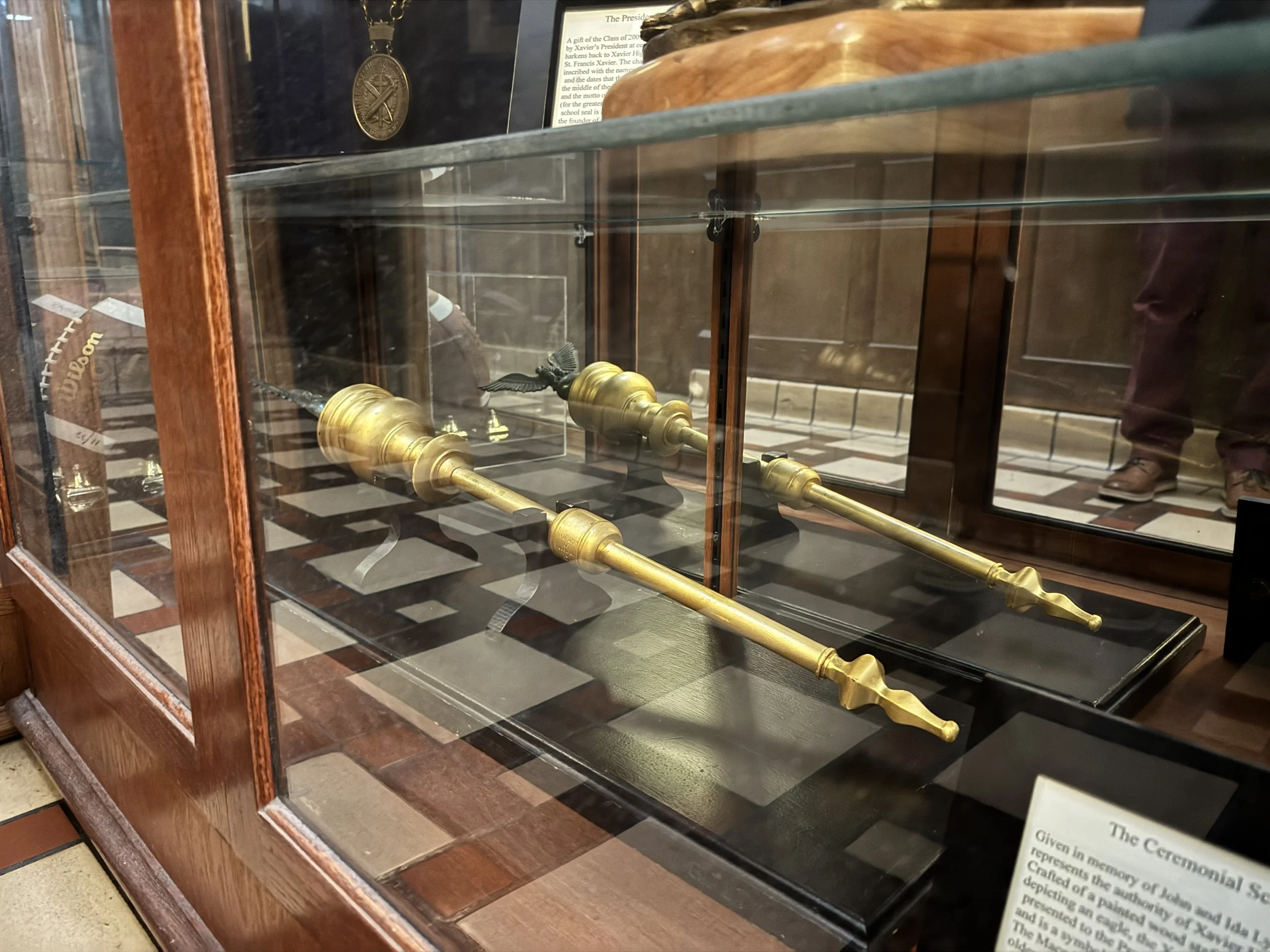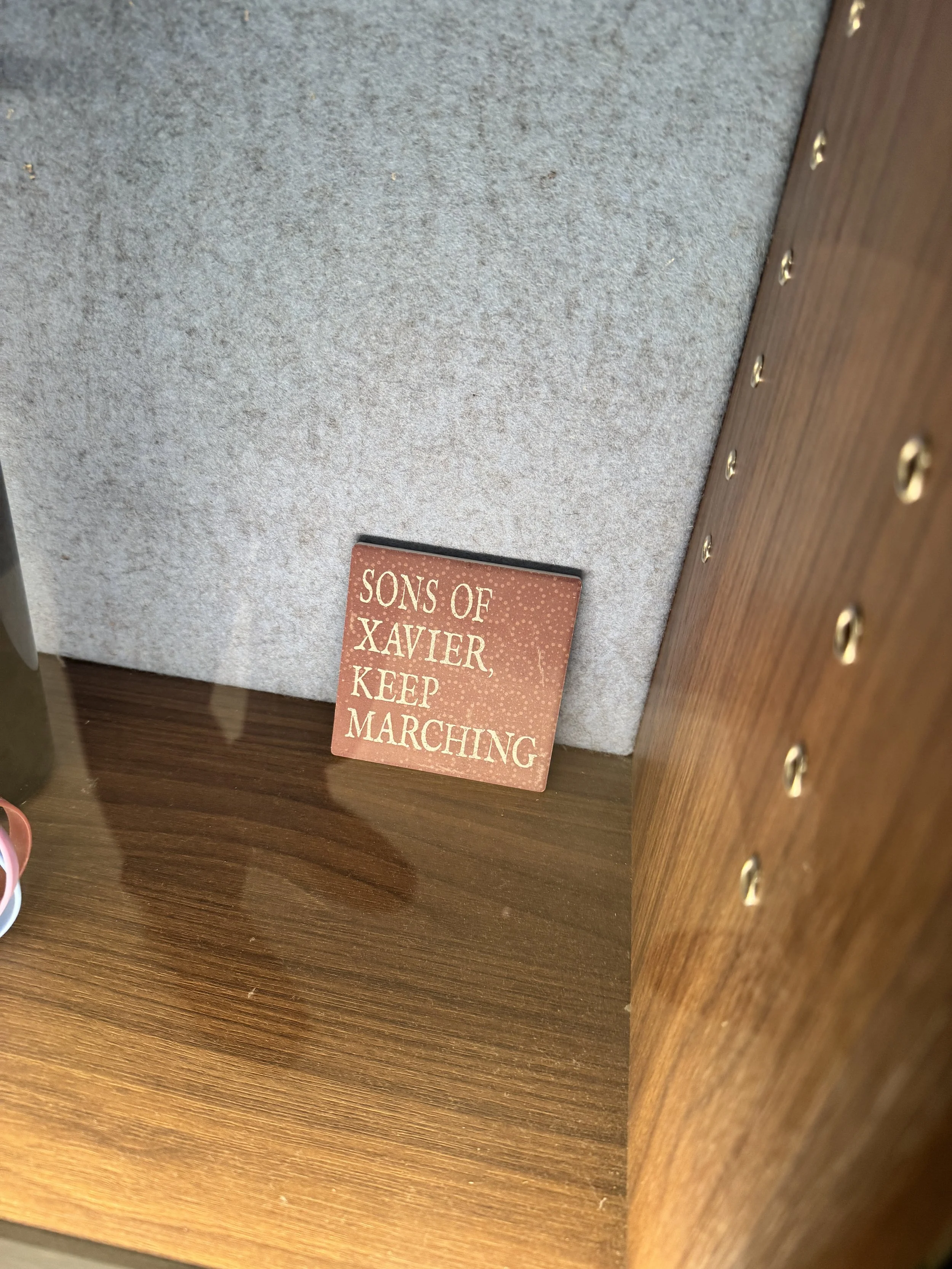 The mural focuses on four key aspects of the Xavier experience: Brotherhood, the Self, Faith and Education, Sports and Activities at the school. Elements around the mural fit into these categories and also fit into this idea of “convergence”. Students go to Xavier to learn and leave to live lives for others. The piece, then, is about that coming and going.